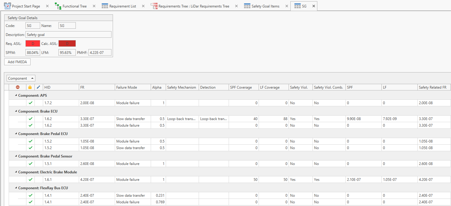 Component Selection : identify and select the components (hardware, software, sensors, etc.) that are safety-critical and require FMEDA analysisFailure Modes Identification : for each selected component, identify potential failure modes. A failure mode is a specific way in which a component can fail Failure Rate Assessment : determine the failure rates of the identified failure modes. This involves collecting data on failure rates from various sources, including field data, manufacturer data, and industry databases Failure Mode Effects Analysis (FMEA) : analyze the effects of each failure mode on the safety functions and the overall system. Determine the severity of the effects, considering potential harm to people, property, or the environment Diagnostic Coverage Assessment : assess the effectiveness of diagnostic mechanisms and safety measures in detecting or mitigating failure modes. Determine the diagnostic coverage of each safety mechanism Single Point Failures Analysis (SPF) : identify and analyze single point failures within the system. Single point failures are failures that, if they occur, could lead to the loss of a safety function Safe State Determination : determine the safe state or default behavior of the system or component in the event of a detected failure Quantitative Analysis : quantify the risk associated with each failure mode by calculating the risk metrics, such as the Probability of Failure on Demand (PFD) and the Diagnostic Coverage (DC) Safety Goal Compliance : verify that the failure modes, their effects, and the diagnostic coverage meet the safety goals defined for the system or component Integration with Safety Requirements : Ensure that the results of the FMEDA analysis are integrated into the safety requirements and safety case for the system |