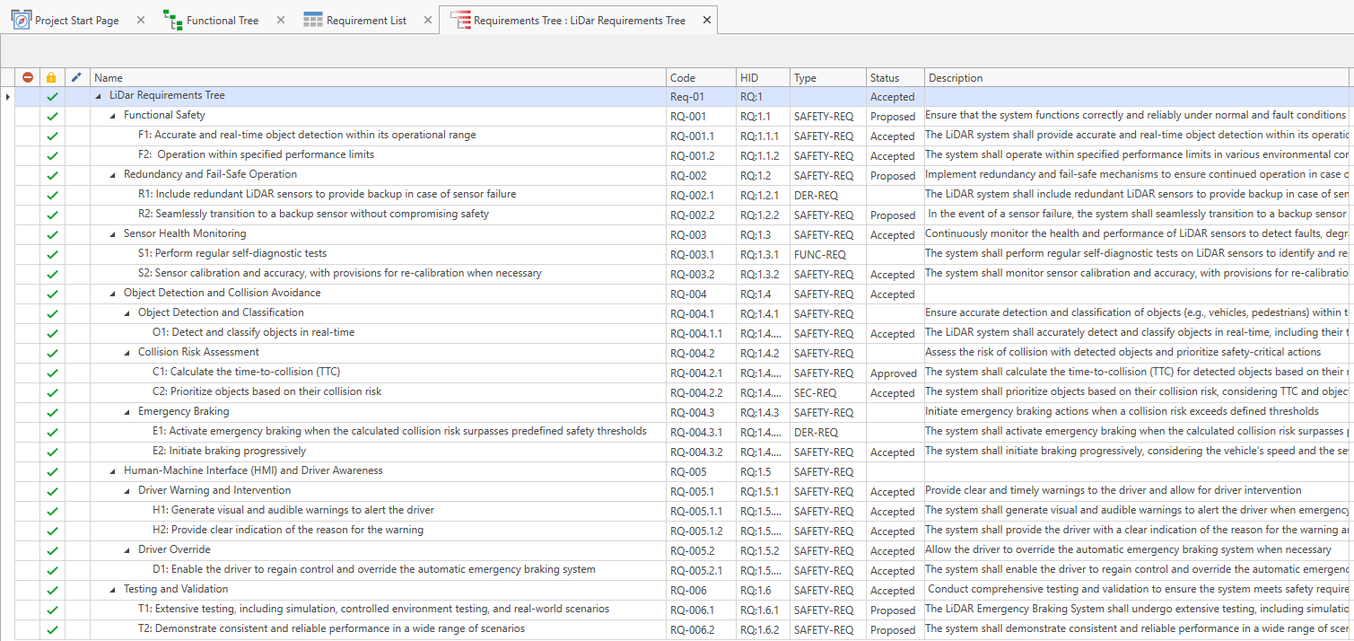 | Requirement Elicitation : identify and gather all safety-related requirements. These requirements define what the system or component must do to achieve functional safety goalsClassification of Requirements : categorize requirements based on their relevance to functional safety. ISO 26262 distinguishes between safety requirements, which are critical for safety, and non-safety requirements, which are not directly safety-related